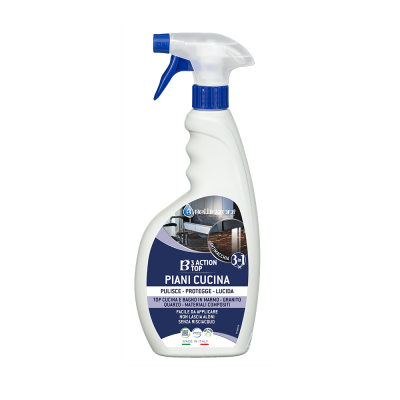 Защита с помощью B-3ACTION TOP эффективна против пятен на водной и масляной основе в целом, однако возможно появление пятен на поверхностях из-за длительного контакта с агрессивными веществами, такими как кислые фруктовые соки, газированные напитки, уксус, алкоголь. и косметика. В этом случае очистите поверхность и удалите возможные следы или травления. После завершения повторите обработку (защиту) с помощью B-3ACTION. Для придания блеска поверхности используйте LISTO. Внимательно прочитайте рекомендации, напечатанные на этикетке. Всегда проверяйте перед использованием. Храните в недоступном для детей месте. Продукт обладает антипятновыводящими свойствами, но не защищает поверхности от кислот. Проверьте фактическую устойчивость материала к продукту на скрытом участке обрабатываемой поверхности. При использовании продукта используйте подходящие средства индивидуальной защиты.
