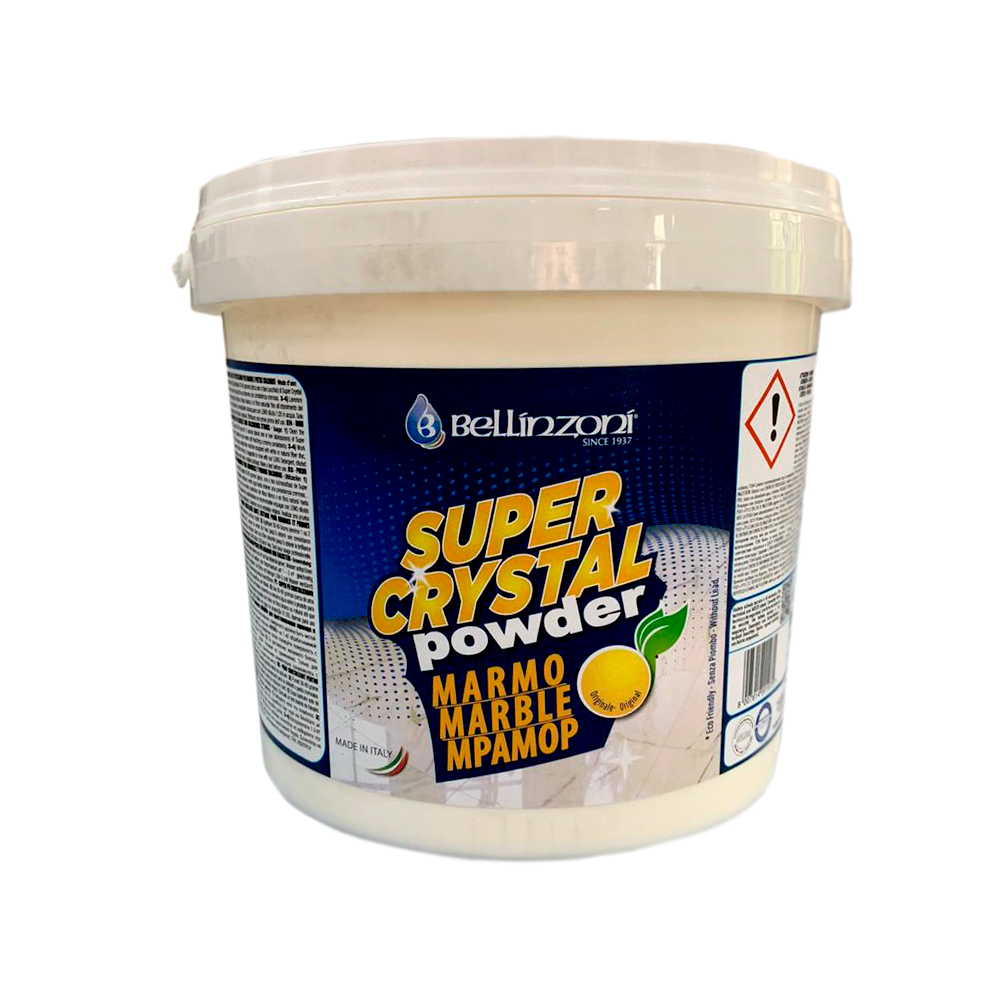 Полировальный порошок для окончательной полировки или повторной полировки мраморных полов, агломерированного мрамора, мармоцемента, терраццо и известняка. Продукт действует т олько на известковые материалы. SUPER CRYSTAL укрепляет поверхность и защищает ее от царапин и разводов, придавая длительный блеск и восстанавливая красоту материала. Это идеальный продукт для восстановления напольного покрытия, изношенного временем или пешеходным движением. SUPER CRYSTAL также позволяет упрочнить поверхность, подверженную интенсивному движению.